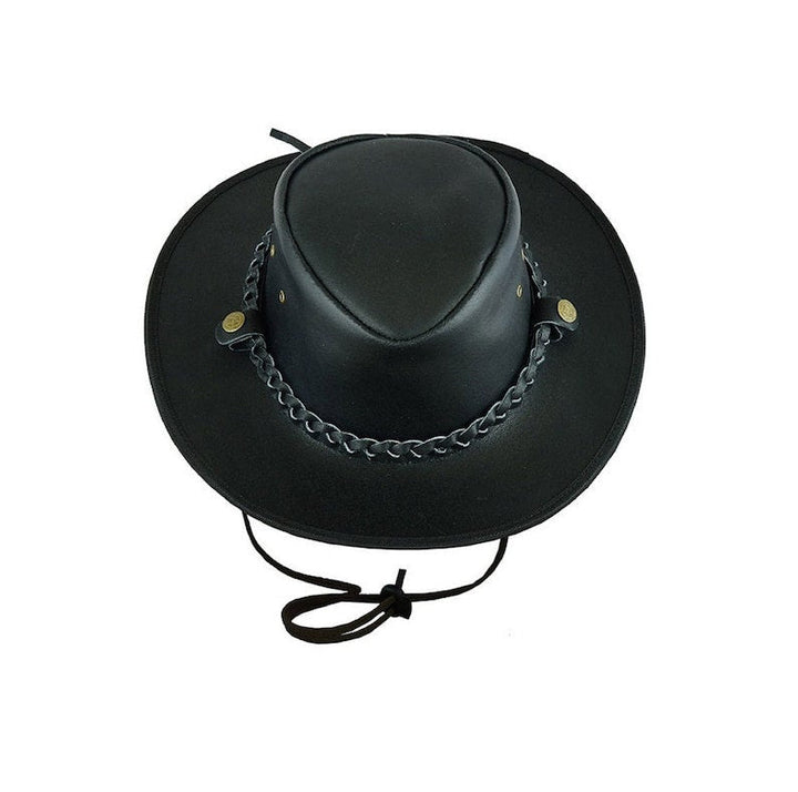 Cowboy Hat Outback Hat Unisex Western-Style Hat For Men Breaded Band Black Leather Hat For Women Gift For Him Gift For Her