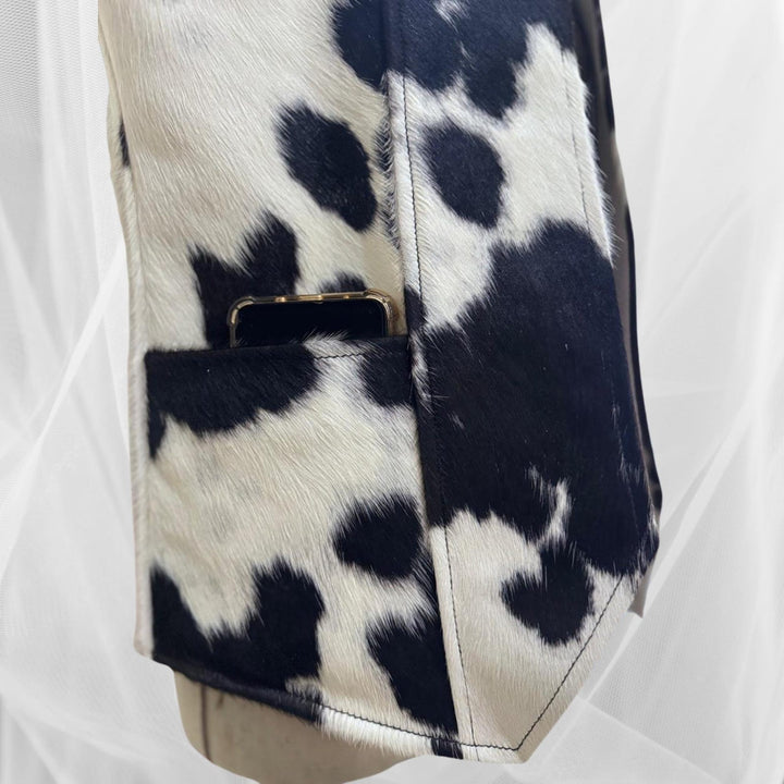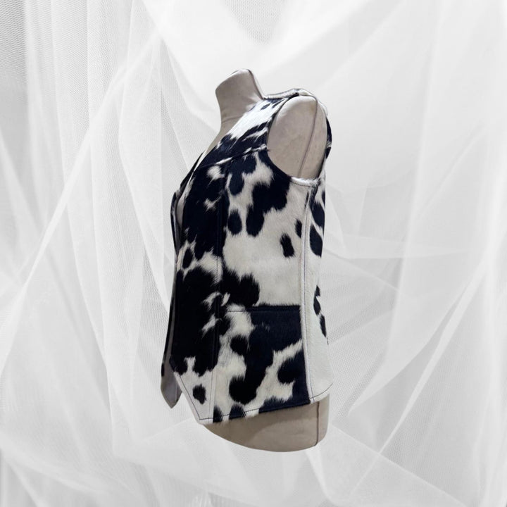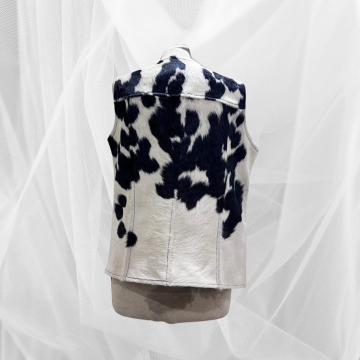 Cowhide hair on hide Leather Vest for Men, Black and White Leather Vest , Handmade Cow Skin Western Style Vest