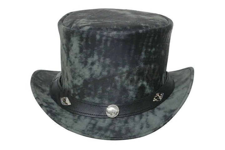 Tags: leather top hat, steampunk hat, biker hat, motorcycle hat, Halloween hat, Halloween costume, headwear, gothic hat, Victorian hat