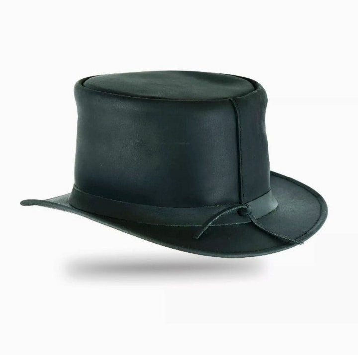 EI Dorado Top Hat Black Leather Top Hat With Simple Band Steampunk Leather Hat Motorcyclists Hat Biker Hat Magician Hat Gift For Her