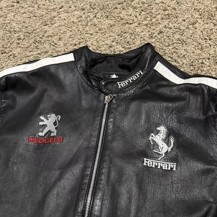 Exclusive Multi-Brand Motorsport Black Leather Jacket - Ferrari, Corvette, Audi Tribute