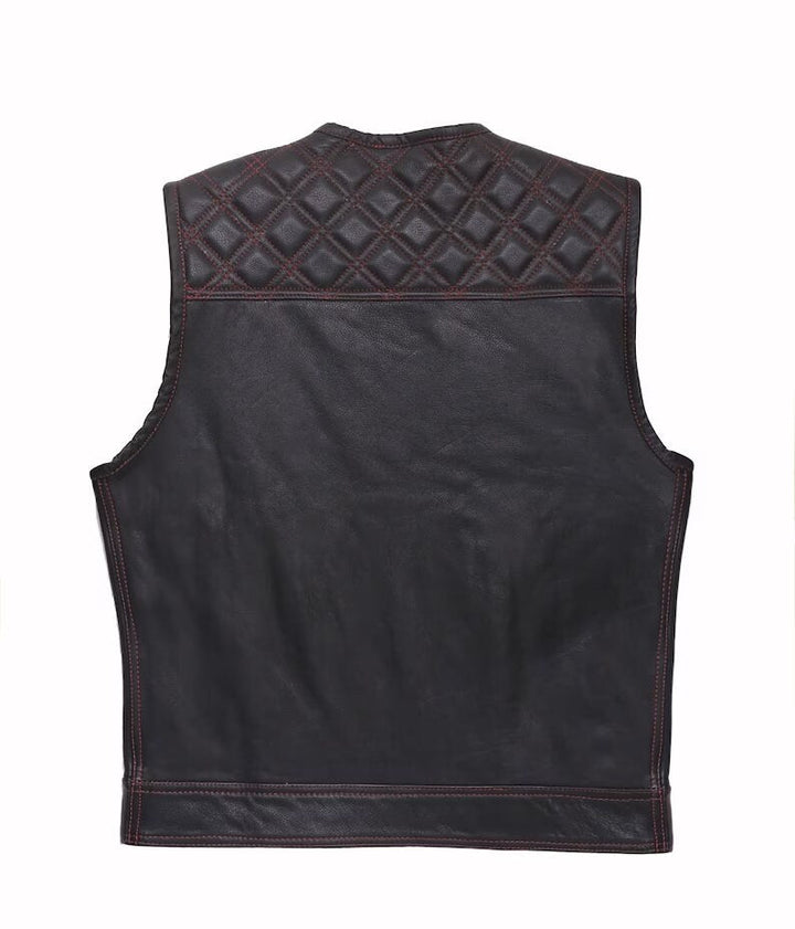 Tags: F1 Red Bandana, Hunt Club, leather builder, diamond quilted, custom biker vest, motorcycle leather vest, rugged sophistication, speed, adventure, motorcycle fashion, practicality.