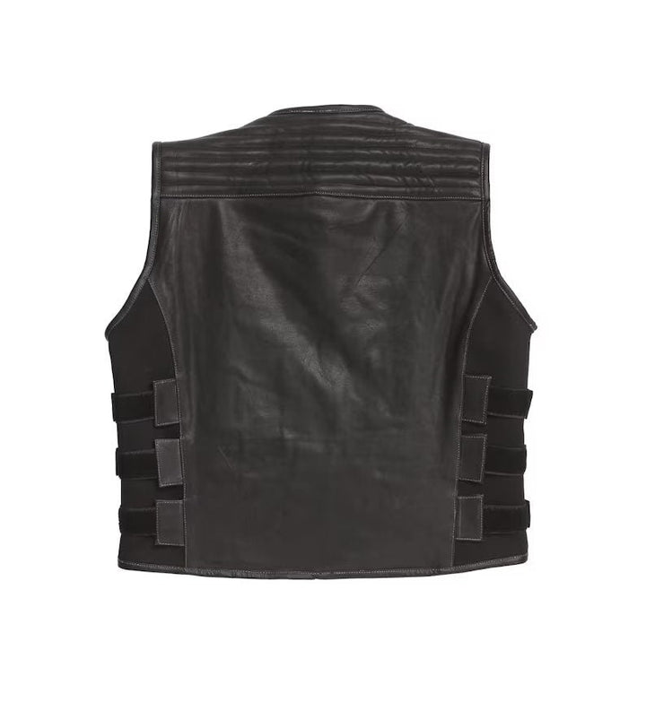 Crafted from high-quality leather, this vest boasts a unique straight quilted design that not only adds a touch of luxury but also provides extra protection and warmth during your rides. The iconic Swat USA design on the back screams exclusivity and sets you apart from the crowd.