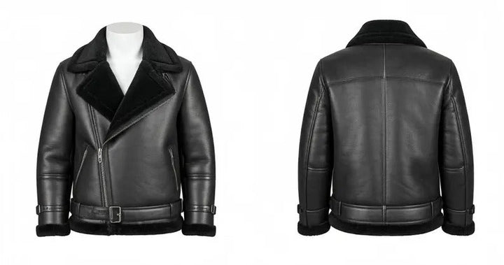 Handmade Black B3 Bomber Aviator Shearling Fur Jacket | Sheepskin Shearling Fur Flying pilot Winter Jacket | Men's RAF Real Leather Jacket