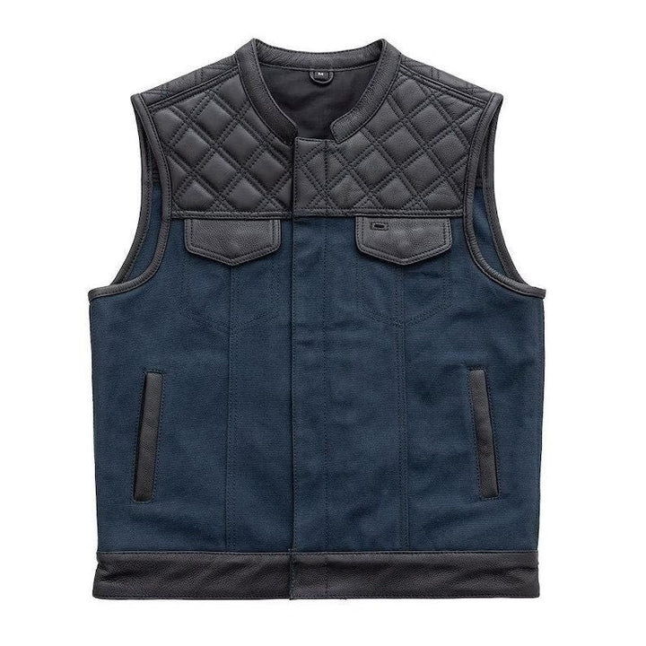 Elevate Your Biker Style with the Handmade Men's Club Style Leather Denim Vest - The Stinger Hunt Club Vest