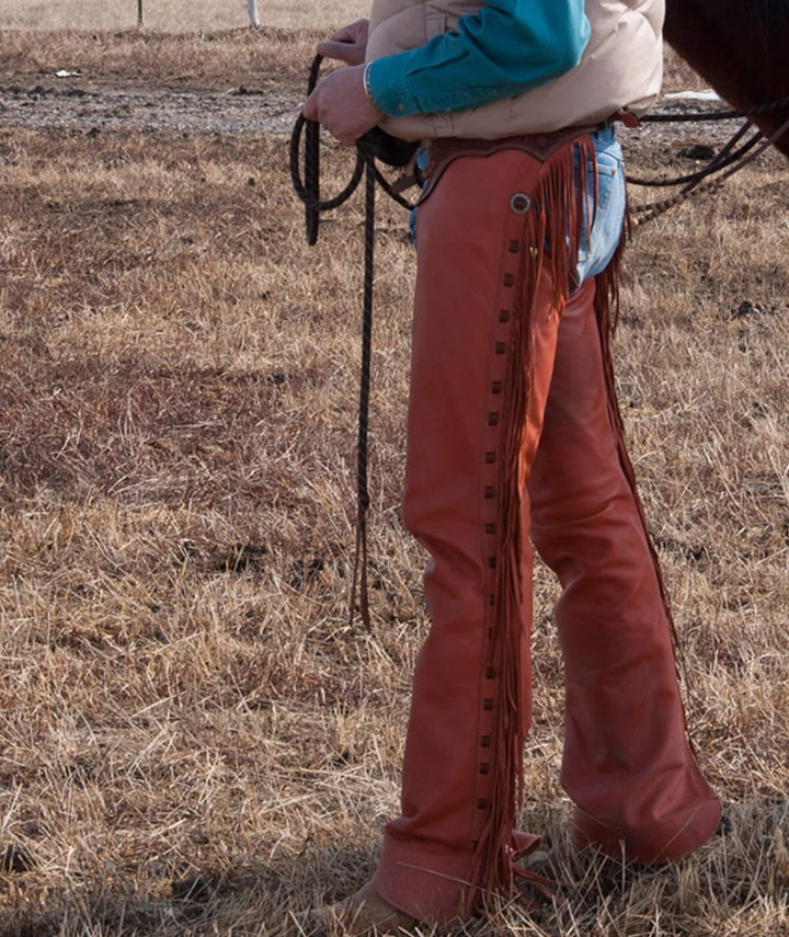 Handmade Native American Brown Cowhide Fringes Style Pant Chap Western Cowboy Chap Rodeo Chap , Horse Gifts For Him
