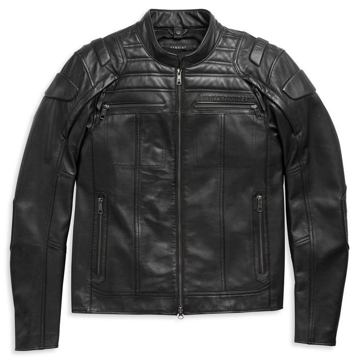 Harley-Davidson Men's Black Leather Biker Jacket - Quilted Shoulders & Sleek Minimalist Design