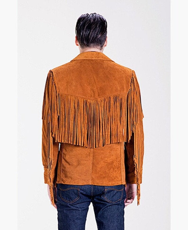 Leather jacket Men's Traditional Native Brown Classic Suede Leather Western Jacket Braided Fringes Country Side Red Indian Western Wear is made of pure leather. This jacket will make you look what you want to be and will fit you the way you want it.