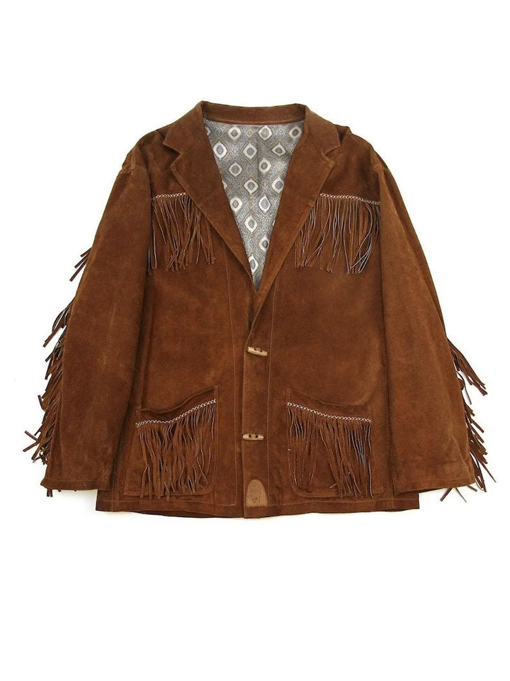 Leather jacket Men's Traditional Native Brown Suede Leather Western Jacket With Braided Fringes Country Side Red Indian Western Wear