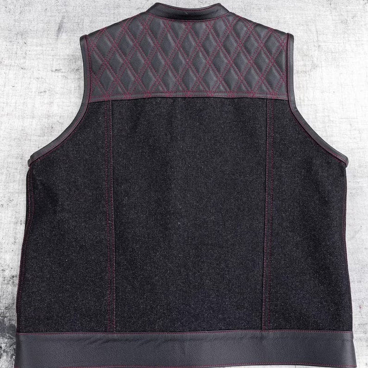 Crafted from high-quality leather and denim, this vest features an intricate diamond quilted pattern with black paisley leather detailing, adding a touch of luxury to the rugged design. The denim-style construction provides a classic biker look that never goes out of style.
