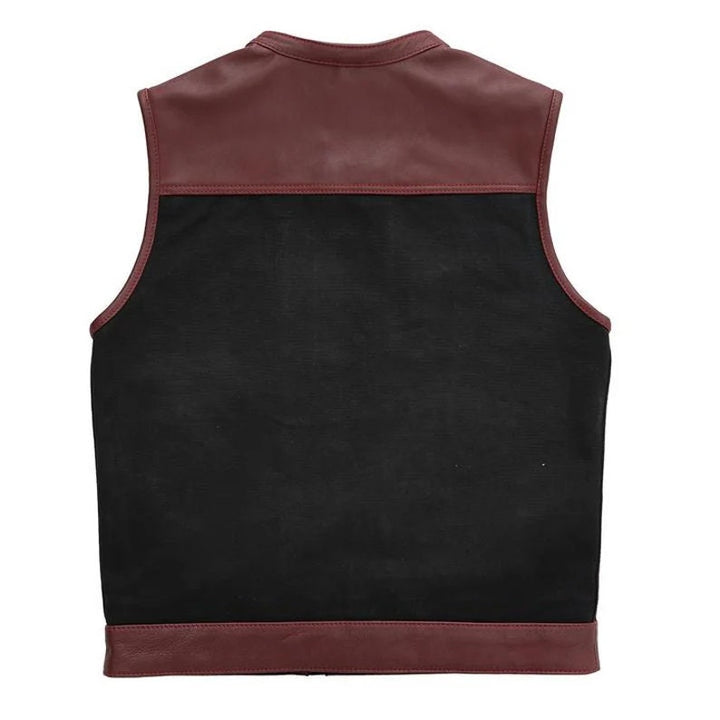 Leather Vest ,Mens Hunt Club OX Blood Black Paisley Leather Build Denim Style Rider Motorcycle Biker Vest,Denim Vest