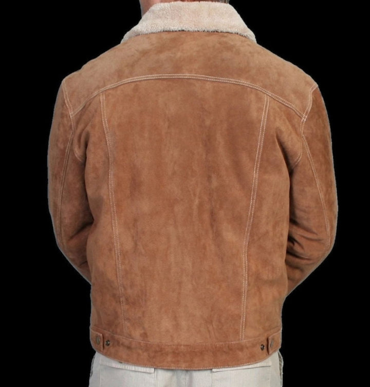 Men Traditional Western Jacket Men Western Fur Jean Jacket - Aztec Trim Suede Jacket - Brown Rode Countryside Fashion Jacket , Gifts For Him