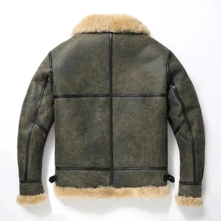 Men's Dark Green Aviator Bomber RAF B3 Winter Jacket, Style Flying Pilot, Warm Shearling Fur Real Sheepskin Leather Jacket,