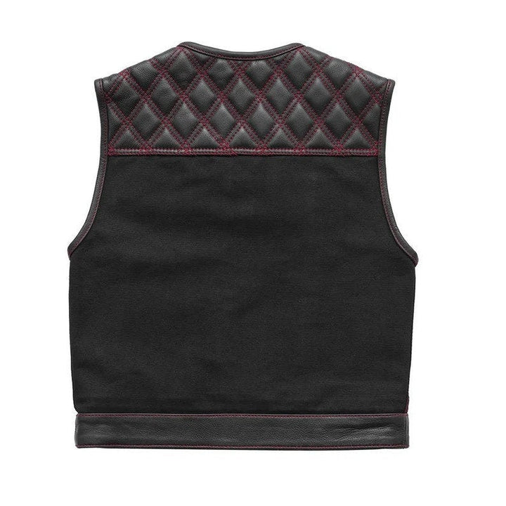 Men's Stinger Biker Vest Or Hunt Club Leather Builder Diamond Quilted Motorcycle Vest Black & Red