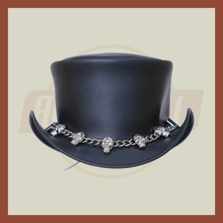 Skull And Chain band Motorcycle Biker Rider Leather Black Steampunk Top Hat
