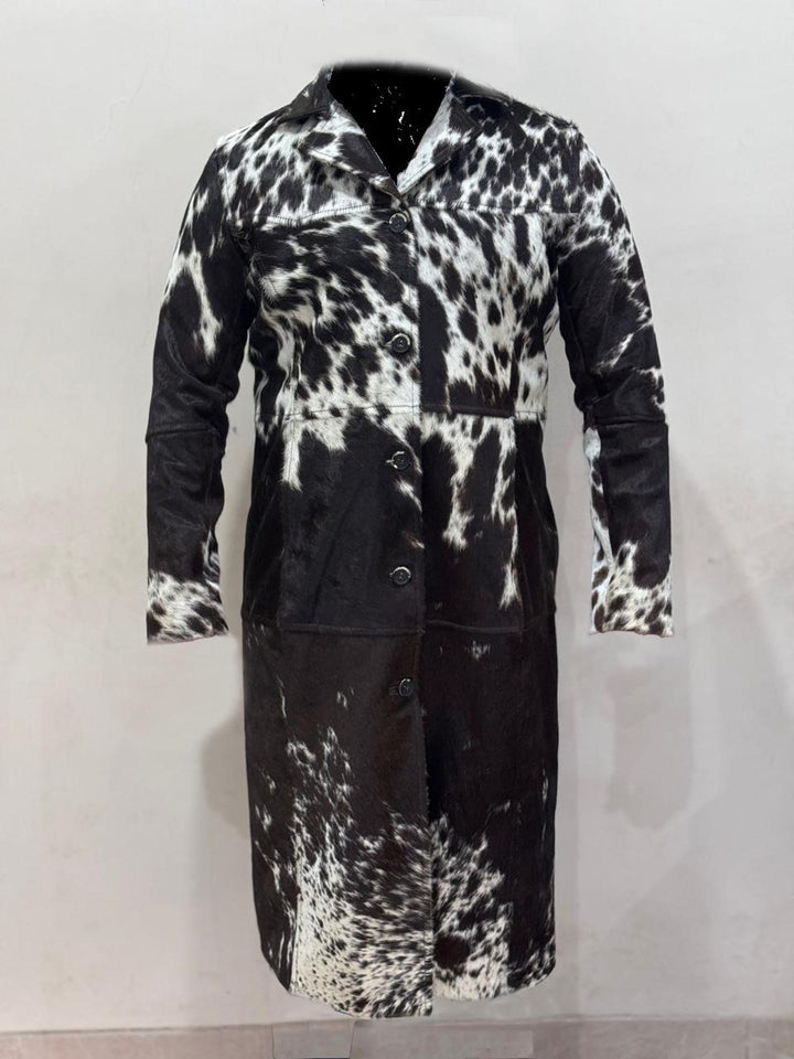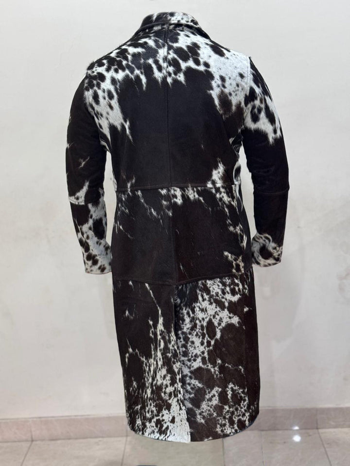Stylish Hair on Hide Leather Coat Long Winter Jacket Handcrafted Cowhide Fur Coat
