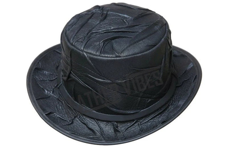 Tags: Top hat, Leather, Marlow crinkle, Gothic, Steampunk, Custom top hat, Men's top hat, Unique, Elegance, Versatile, Handmade, High-quality, Attention to detail, One-of-a-kind, Fashion-conscious.