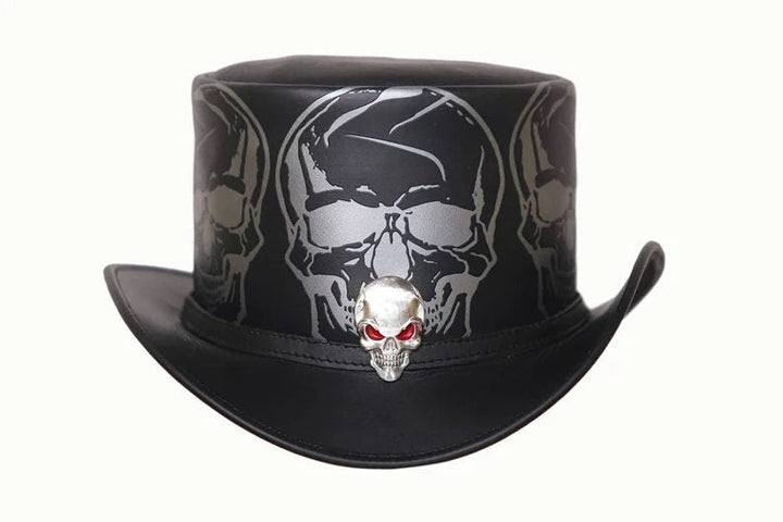 Top Hat Red Eye Skull Leather Top Hat ,Steampunk Top Hat,Gothic Top hat Biker MC,Custom Leather Hats