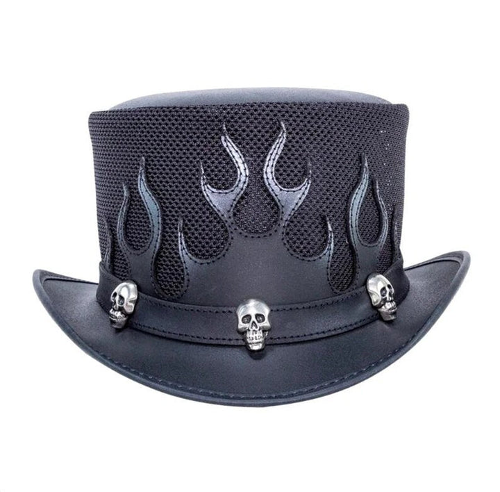 So why settle for a basic hat when you can make a statement with the Top Hat - Skulls Mens Black Leather Hat with Flames Mesh Design? Order yours today and experience the ultimate in alternative fashion. #SkullsTopHat #FlamesMeshDesign #BikerTopHat #GothicTopHat #SteampunkTopHat #CustomTopHat #LeatherTopHat #EdgyFashion #AlternativeFashion