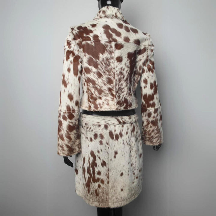 * Item: Western Cowhide Skirt and Jacket Set Cowgirl Chic Outfit Hair on Hide Cowgirl Clothing Western Style Elegance Complete Outfit Rustic Charm